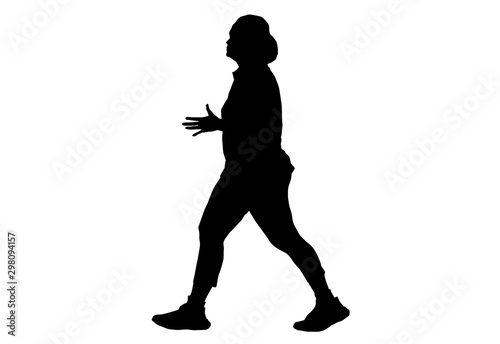 Silhouette this is women run Exercise for Health At area Stadium Outdoors.