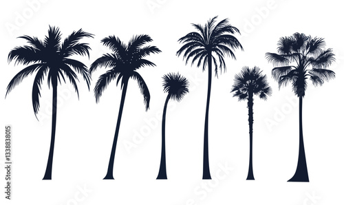 Silhouette Vector Collection of Diverse Palm Trees for Tropical Themed Design