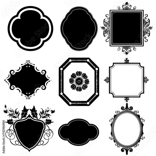 Silhouette vintage sticker label Vintage frames element for wedding invitation black color only
