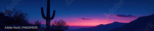 Silhouetted cacti, sharp spines against night sky, scenic, desert landscape