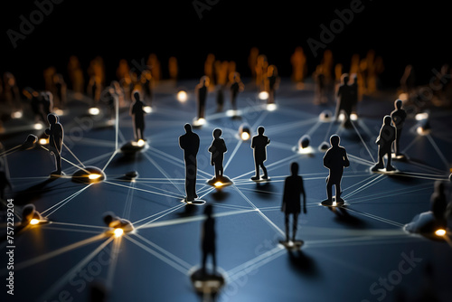 silhouetted figures interconnected by illuminated lines, symbolizing social or professional networking on a dark background