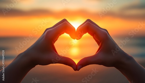 Silhouetted Hands Forming a Heart in Sunset’s Warm Glow