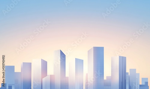 Silhouetted skyscrapers against a soft, pastel sky at sunrise create a serene urban landscape.