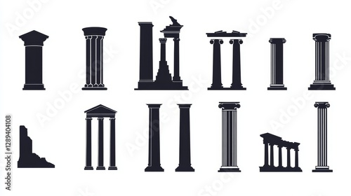Silhouettes of ancient Greek columns in different styles. These columns were used in the construction of temples and other buildings.