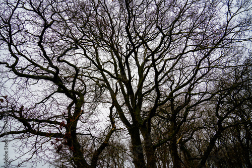 Silhouettes of branches of a large tree