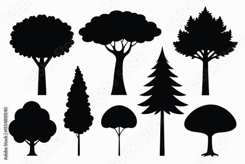 Silhouettes of evergreen trees in a forest setting