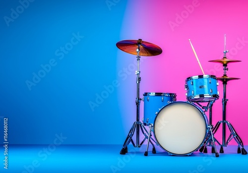 Silhouettes of music instruments on a concert stage at a rock festival, set against a vibrant background with room for copy.