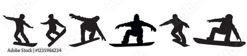 Silhouettes of people snow boarding. snowboard riders silhouette on isolated withe background.