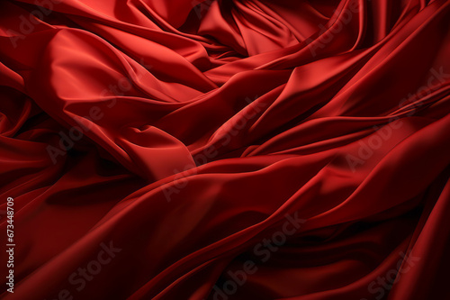 Silk fabric background, waves and folds of red satin rich fabric, abstract texture.