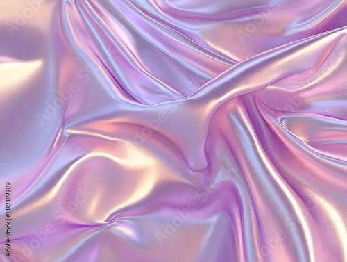 Silken Symphony: Flowing waves of iridescent fabric, in a dreamy palette of lavender and gold, create an abstract and luxurious textile study, highlighting the delicate interplay of light and shadow.