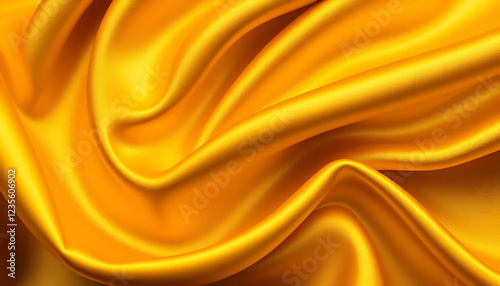Silky golden fabric, luxurious satin texture, flowing waves, rich amber hues, elegant drapery, smooth folds, shimmering surface, abstract background, warm lighting, close-up detail, high-resolution, p