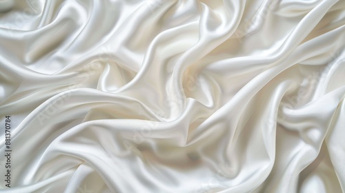 Silky white satin fabric with copy space wavy folds Top view for elegant web banner