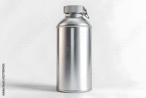 Silver blank aluminum bottle spray can of chemical insecticide design with sleek on white background with light and shadow. Metal bottle paint can realistic photo image for color paint, art.