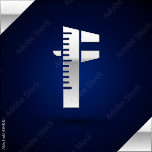 Silver Calliper or caliper and scale icon isolated on dark blue background. Precision measuring tools. Vector