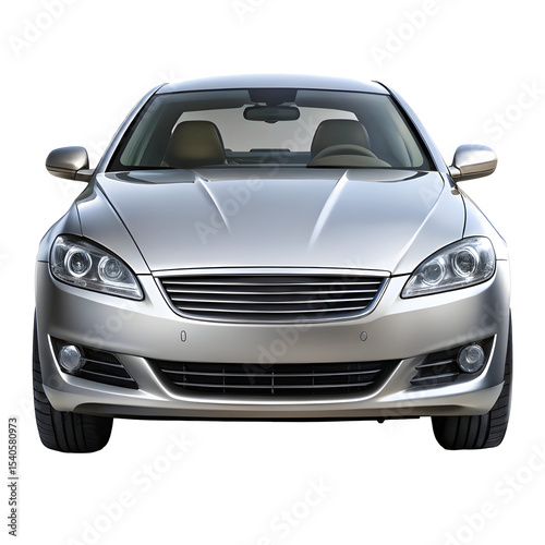 Silver Car Front View – Sleek and Modern Vehicle Design on Pure White Background