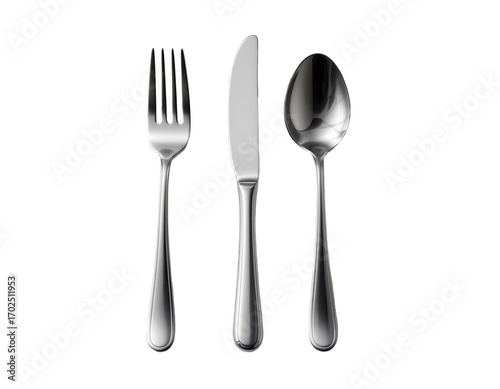 Silver Cutlery Set with Fork Knife and Spoon on Transparent background