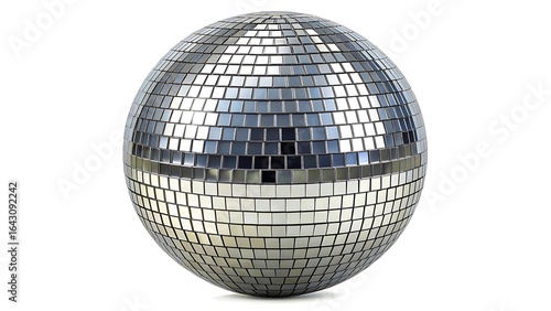 Silver disco mirror ball isolated on white background, retro party dance sphere with reflective square tiles