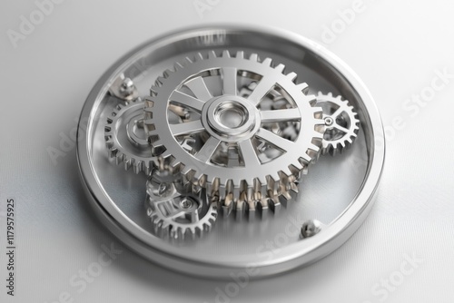 Silver gears icon top view on clean surface for engineering, automation, and technology themes in industry contexts