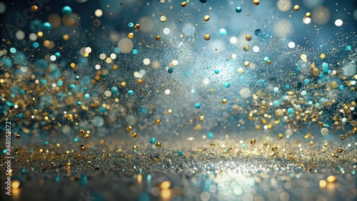 Silver gold and dust background with light navy and turquoise colors, confetti-like dots