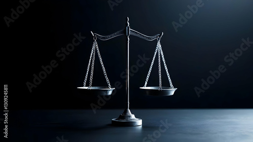 Silver Justice Scale Object in Dramatic Lighting on a Dark Background Reflecting Legal Concepts