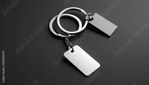 Silver key chain with a minimalist and modern design. Two blank rectangular pendants offer room for personalization. Perfect for a gift or everyday accessory