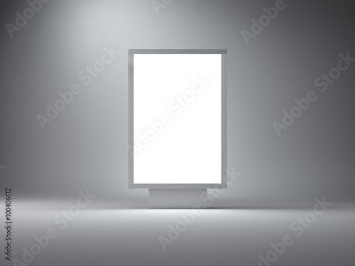 Silver lightbox in the empty studio. Gray wall background. 3d render