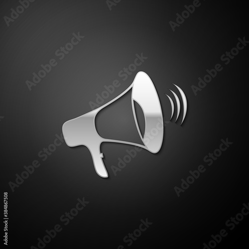 Silver Megaphone icon isolated on black background. Long shadow style. Vector.
