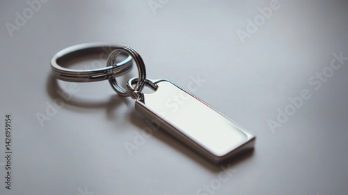 Silver Metallic Keychain On White Surface with Smooth Reflection Under Soft Lighting