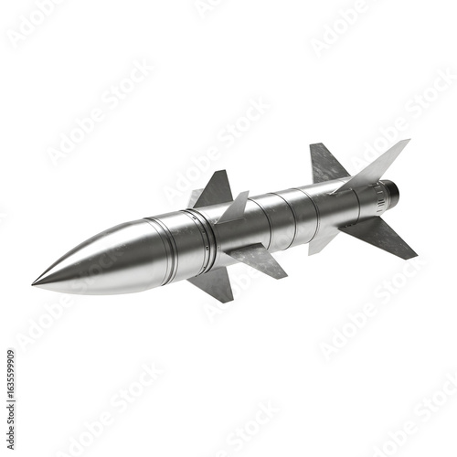 Silver Missile Isolated On Transparent Background Realistic 3D Illustration