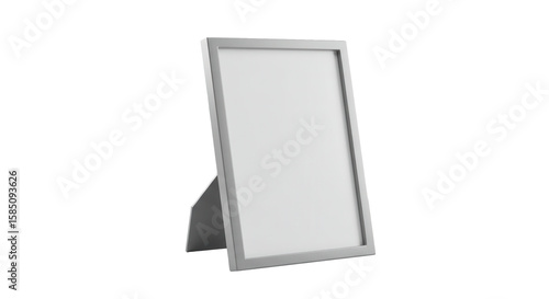Silver picture frame standing on a table with a blank background