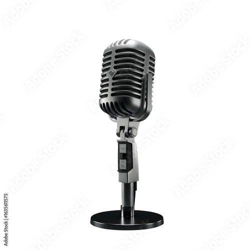 Silver Retro Microphone Isolated on Transparent Background 3D Render