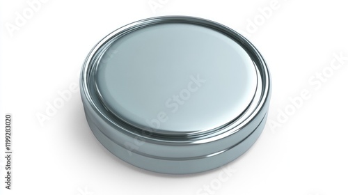 Silver round pill bottle with a silver lid, typically used for medication storage and administration.
