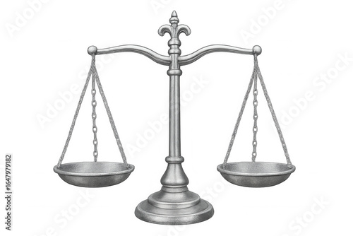 Silver scales of justice balancing on transparent background, symbolizing law, fairness, and equality