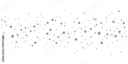Silver stars vector background, sparkling Christmas confetti falling magic shining sparkles, flying stars glitter border