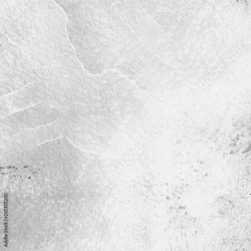 Silver with gray ink and watercolor texture on white paper background. Paint leaks and ombre effects. Hand painted abstract image.