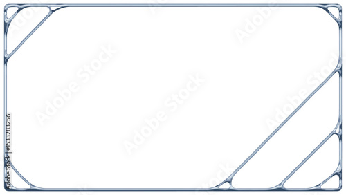Silver-blue metallic frame floating on transparent backdrop showing curved corners diagonal struts
