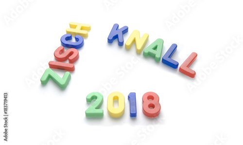 Silvester Gruss, Zisch Knall 2018, Magnet Buchstaben , perspektivische Ansicht, freigestellt auf Weiss