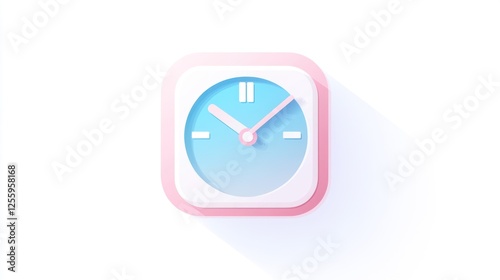 Simple 3D Clock Icon on White Background. Possible Use Digital interface element