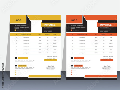 Simple abstract minimal design invoice for your business uses with color variation