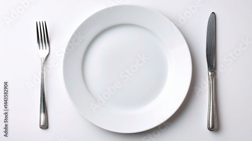 Simple and Elegant Dining Setup with Fork and Knife on White Plate