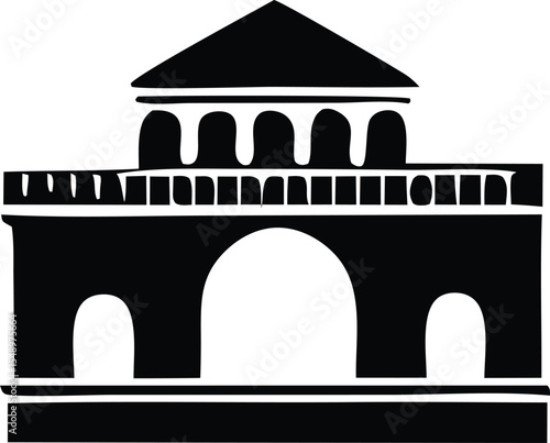 Simple Black and White Architectural Drawing of an Ancient Archway stylized black white illustration archway structure features roof columns arched opening The