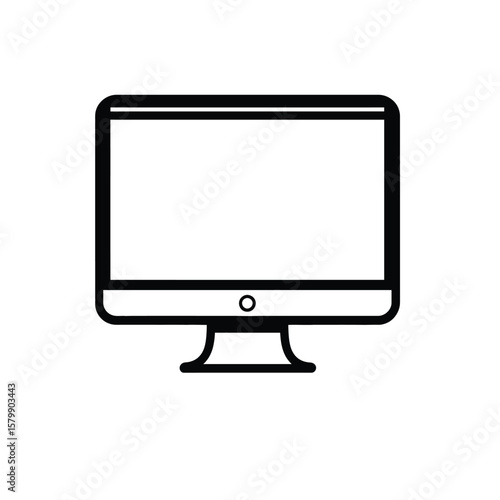 Simple Black and White Computer Monitor Outline with Circular Power Button and Stand