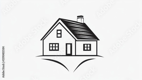 Simple black and white house icon, graphic design, use in real estate or architectural themes