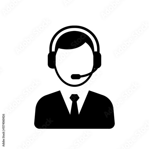 Simple black and white icon depicts a person wearing a headset.