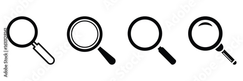 Simple black and white magnifying glass icon symbol. Magnifying glass icon on white background. Search magnifying glass vector illustration