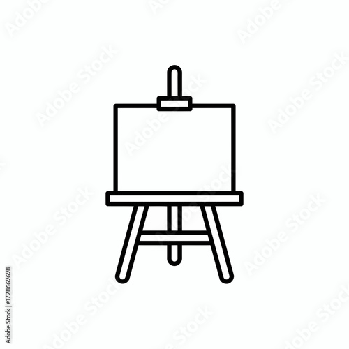 Simple black and white outline vector illustration of an artist's easel for creative projects silhouette