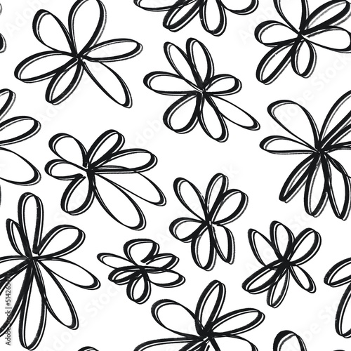 Simple black and white seamless pattern with simple flower illustrations