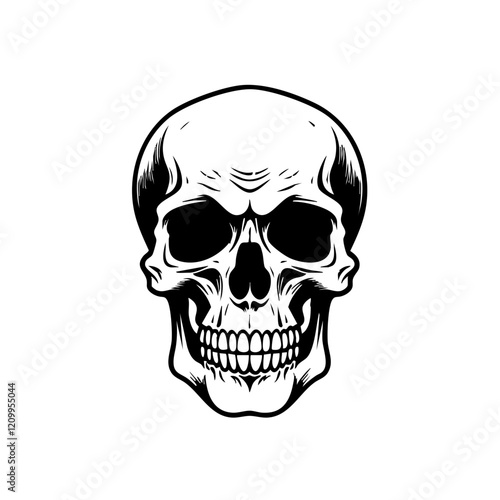 Simple black and white skeleton skull icon illustration vector.