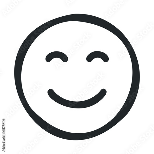 Simple black and white smiley face icon with happy expression