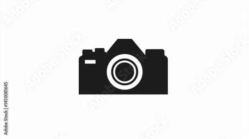 Simple black camera icon on white background. Possible use Stock photo for websites or apps related to photography or technology